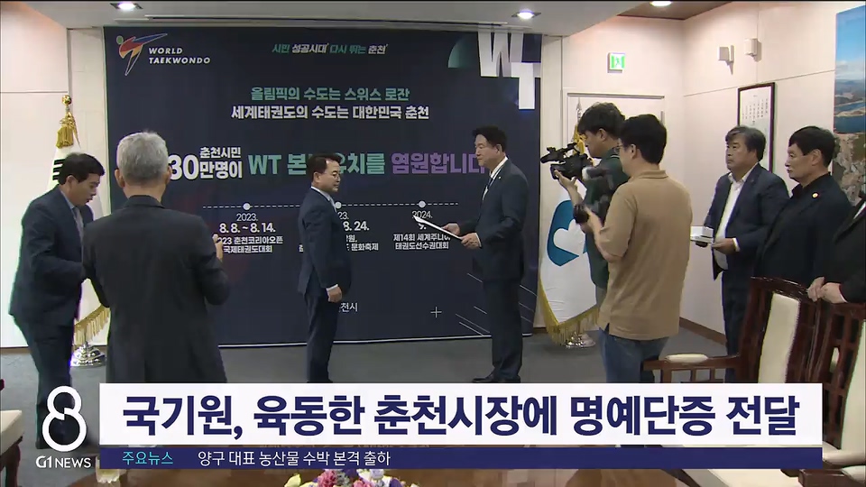 이번 명예단증 전달은 오는 8월 개최되는 '2023 춘천코리아오픈대회'와 내년 개최되는 '2024 세계주니어태권도선수권대회'의 성공 추진을 위해 마련됐습니다.