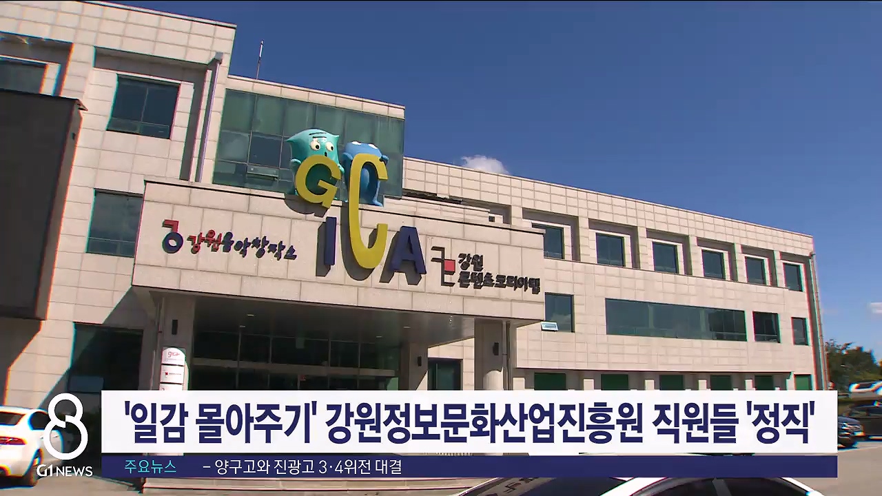 춘천시에 따르면 진흥원은 어제(20일) 내부 인사위원회를 열고, 징계위에 회부 된 간부 A씨 등 3명에 대해 '정직 1개월' 처분을 내렸다고 밝혔습니다.