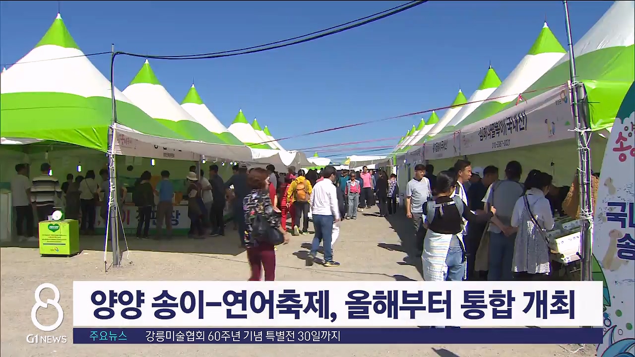 양양군은 매년 9월과 10월 각각 개최했던 송이축제와 연어축제를 올해부터 통합하기로 하고, 올해 축제를 오는 10월 4일부터 닷새간 개최한다고 밝혔습니다.
