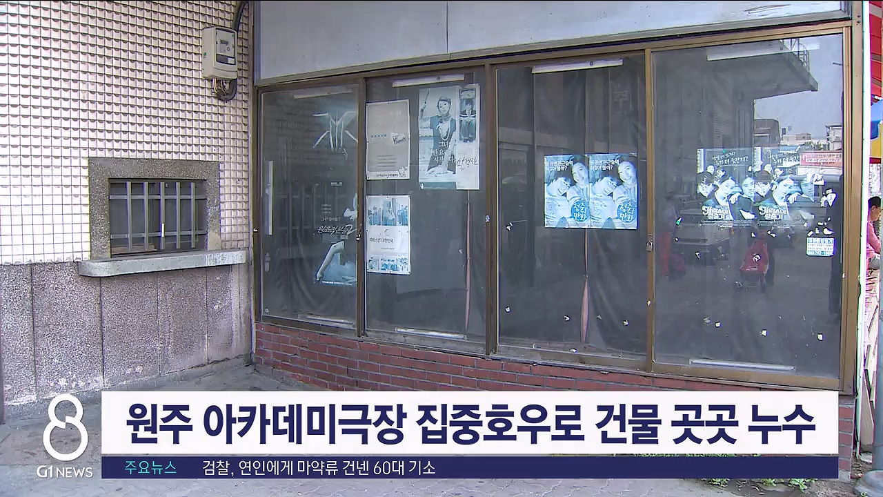건물 안전성 평가 D 등급을 받은 원주 아카데미 극장이 최근 집중호우로 곳곳에서 누수 등이 발생한 것으로 나타났습니다.