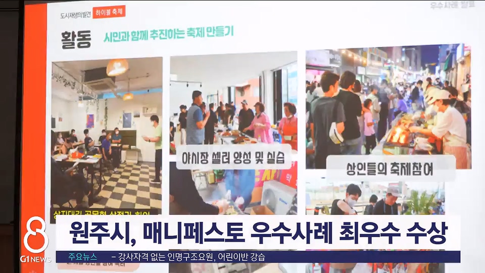 원주시가 전국 기초단체장 매니페스토 우수사례 경진대회에서 최우수상을 받았습니다.