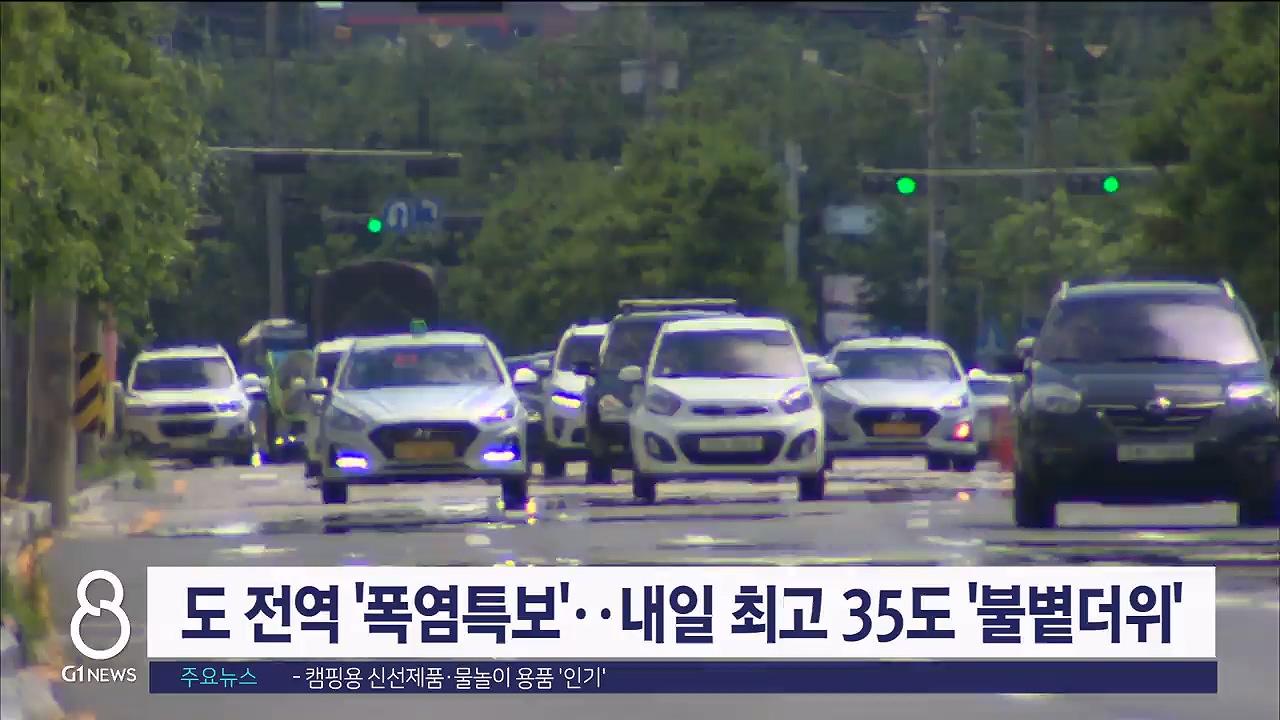 춘천과 원주, 강릉 등에 폭염경보가 내려지는 등 도내 모든 시군에서 폭염특보가 유지되고 있는 가운데, 내일도 불볕더위가 이어지겠습니다.