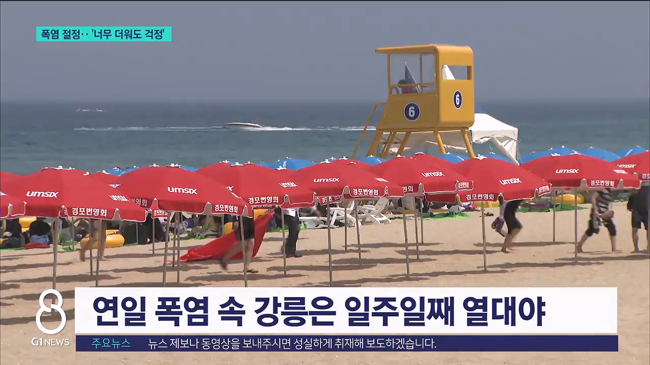 오늘 강릉의 아침 기온이 30도에 달하고, 한 낮 기온은 35도를 넘어서면서 해변에서 피서를 즐기기 어려워졌기 때문입니다.