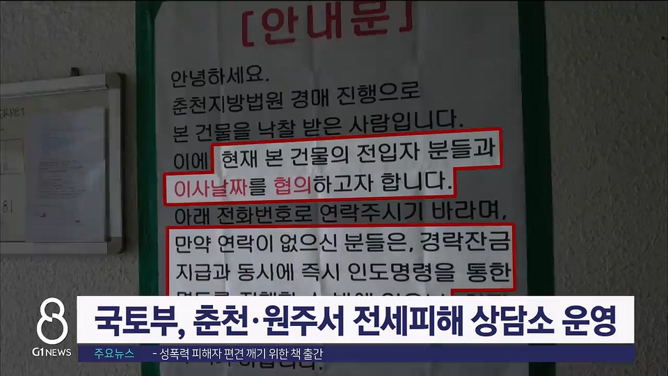 국토교통부가 내일(31일)부터 2주 동안 춘천과 원주에서 '찾아가는 전세피해 상담소'를 운영합니다.