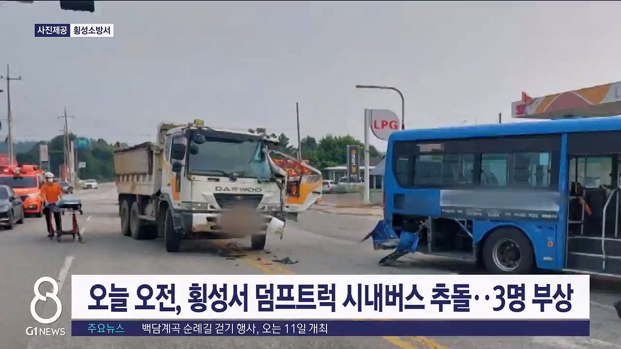 횡성서 덤프트럭 시내버스 추돌..3명 부상