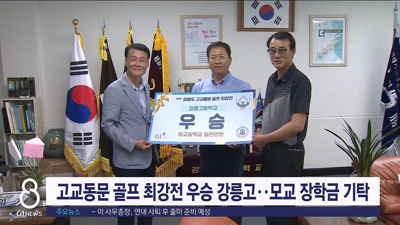 강릉고 총동문회와 골프 최강전 출전 선수단은 오늘(2일) 모교를 찾아 1위 상금으로 받은 천만 원을 학교 발전을 위해 전달했습니다.