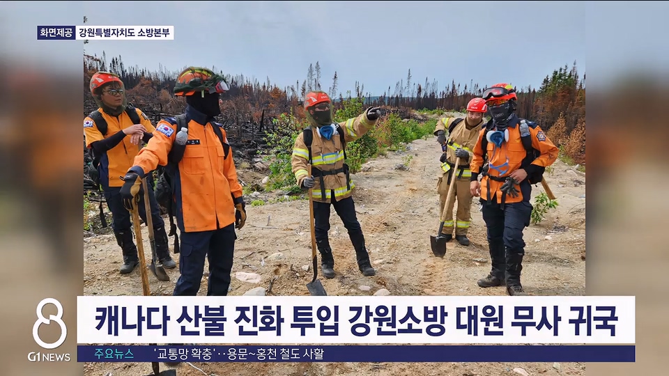 한 달 전 캐나다 퀘백 주의 산불 진화를 돕기 위해 파견됐던 강원소방 소속 진화대원 33명이 산불 진화율 94%를 달성하고 그제(2일) 무사히 귀국했습니다.