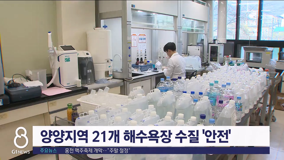 양양군은 지난 6월에 이어 지난달 26일 지역내 21개 해수욕장 수질을 검사한 결과 대장균과 장구균 모두 기준치 이하로 검출됐다고 밝혔습니다.