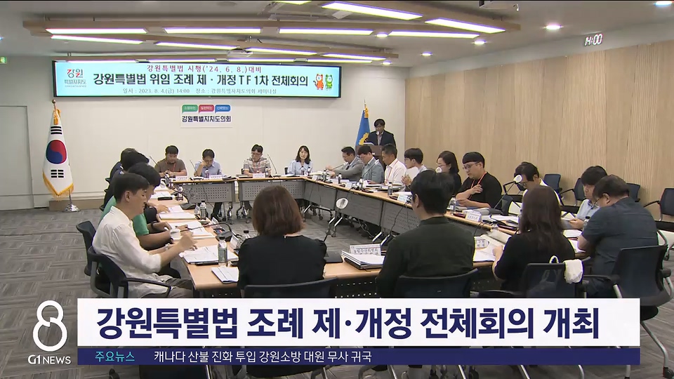 강원특별자치도가 강원특별법 조례 제·개정 특별 전담반을 구성해 오늘(4일) 도의회 세미나실에서 1차 전체 회의를 열었습니다.