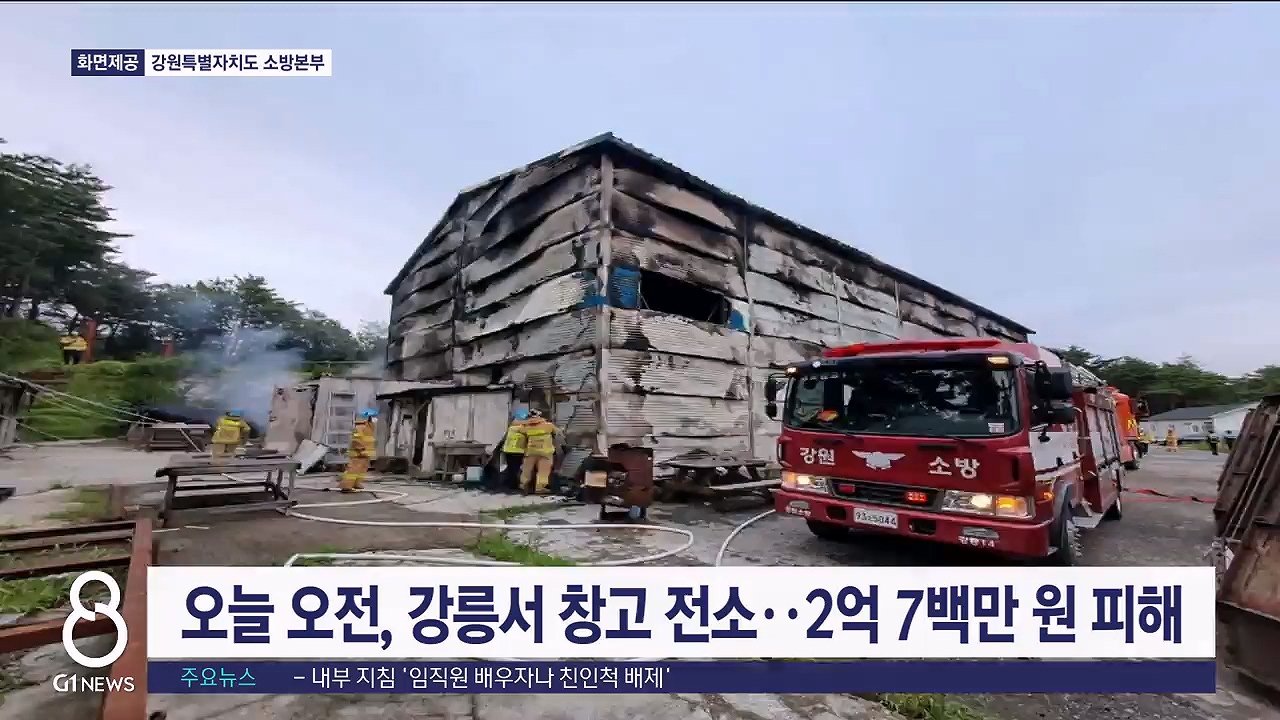 오늘 오전, 강릉서 창고 전소..2억 7백만원 피해