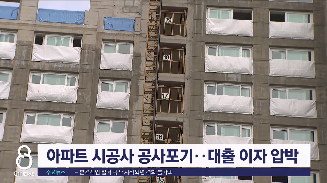G1뉴스에서는 지난주 삼척의 한 아파트 시공사가 공사를 포기하면서 입주 예정자들의 피해가 우려된다는 소식 전해드렸는데요.