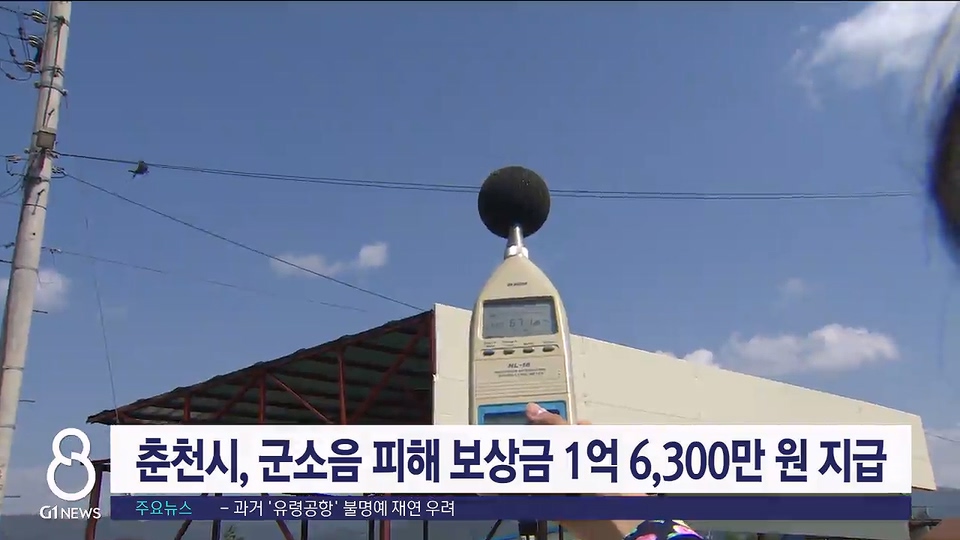춘천시가 신북항공대 인근 소음대책지역 거주 주민 590명에게 군소음 피해 보상금 1억 6천300만 원을 오는 11일까지 지급합니다.