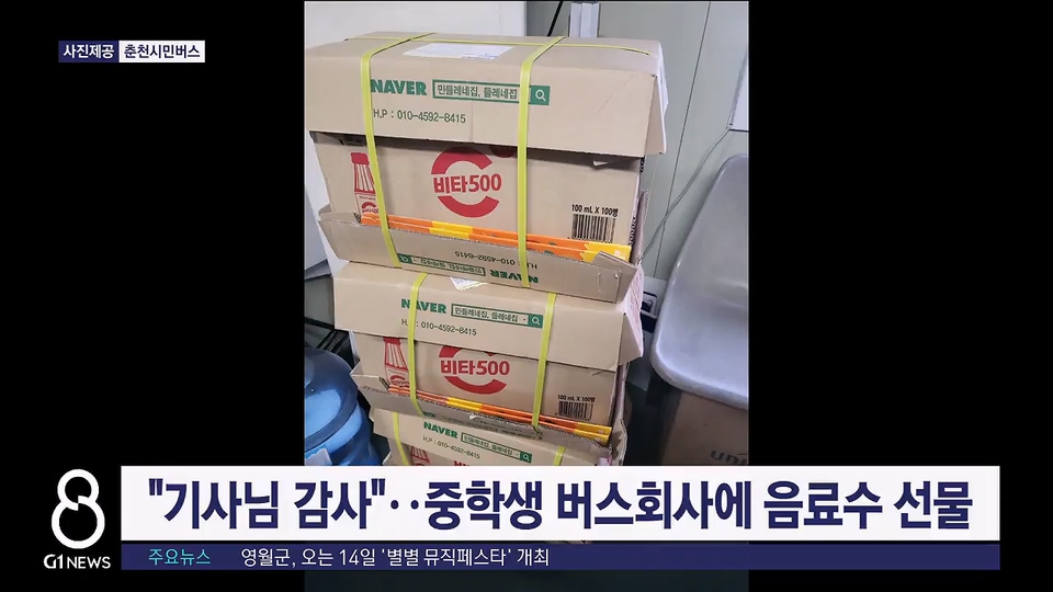 "기사님 감사" 버스회사에 음료 300병 선물한 중학생