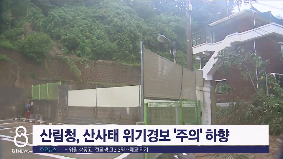 산림청이 오늘(11일) 오후 1시부터 산사태 위기경보를 '심각'에서 '주의'로 하향 발령했습니다.
