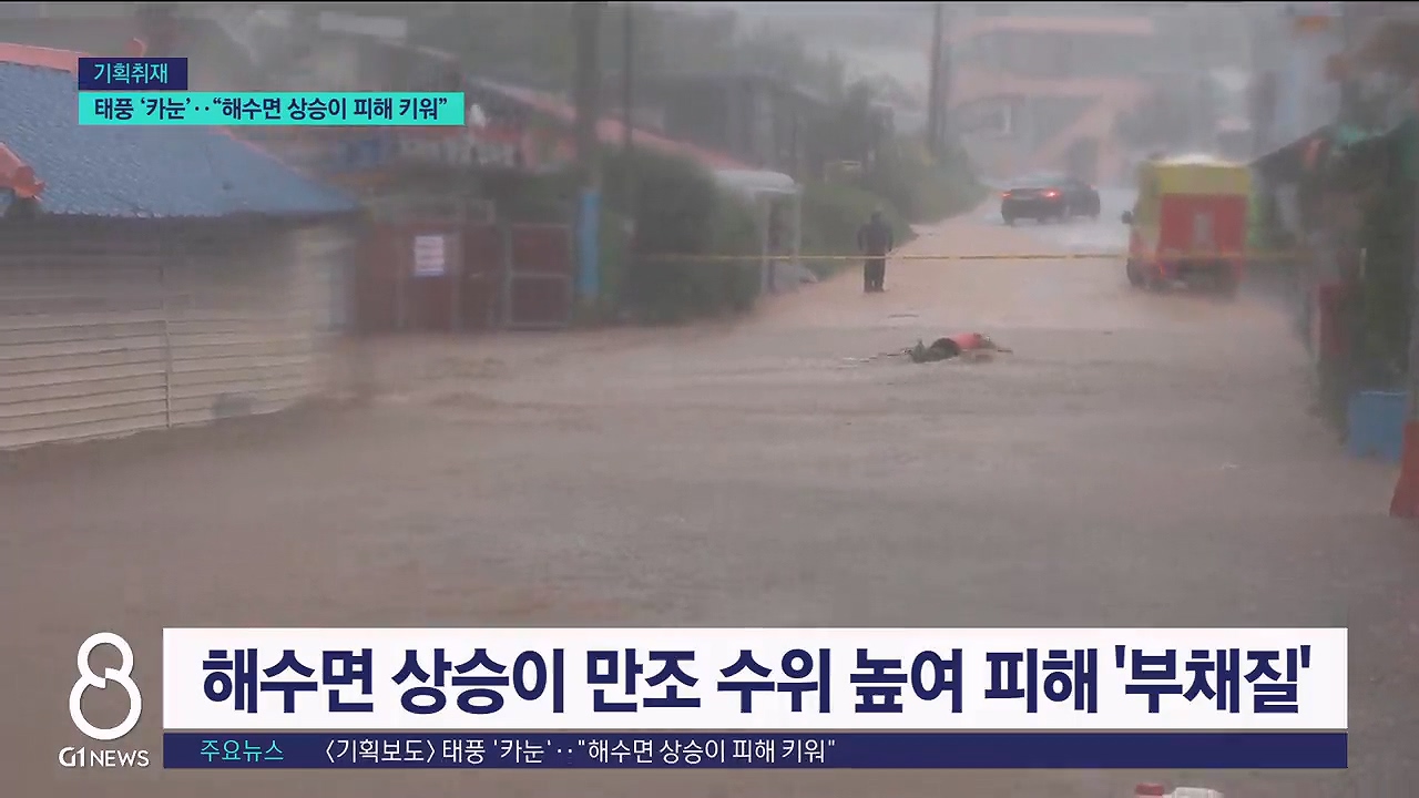 바다 수위가 높아져 빗물이 빠져나가지 못해 곳곳이 침수되는 피해를 입었습니다.