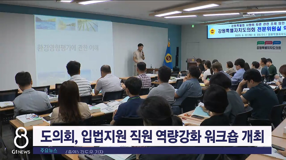 강원특별자치도의회가 세미나실에서 정책지원관과 법제관을 비롯한 7개 전문위원실 전체 직원을 대상으로 입법 지원 역량강화 워크숍을 열었습니다.