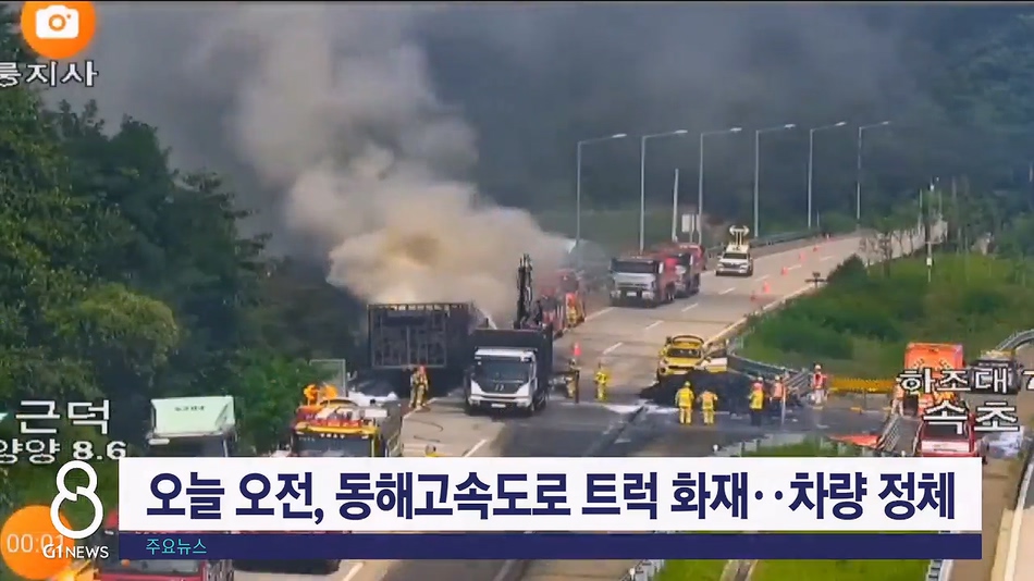 오늘(23일) 오전 8시 18분쯤 양양군 현남면 동해고속도로 강릉 방면에서 폐타이어를 실은 트레일러 차량에서 불이 나, 40여분 만에 꺼졌습니다.
