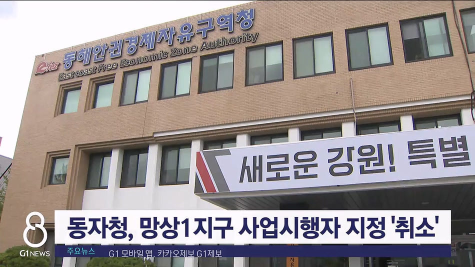 동해안권경제자유구역청이 망상1지구 개발사업시행자인 동해이씨티 대한 사업자 지정을 취소했습니다.