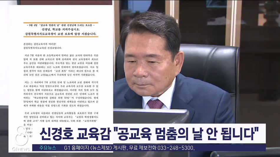 교육현장에서 다음달 4일을 '공교육 멈춤의 날'로 하자는 논의가 진행되는 것과 관련해, 신경호 교육감이 자제를 당부하고 나섰습니다.