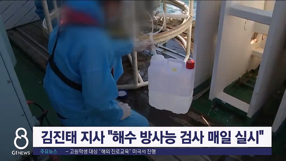 김 지사는 "동해에서 매일 시료를 채취해 강원보건환경연구원에서 방사능 검사를 하고 결과를 실시간으로 발표하겠다"며,