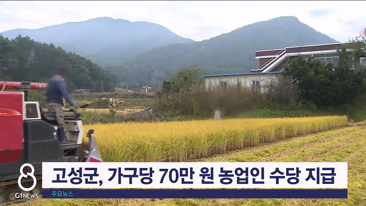 고성군이 지역내 2천400여개 농가에 가구당 70만 원의 농업인 수당을 지급합니다.