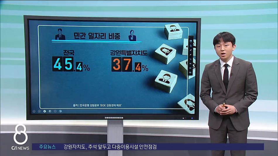 <터치스크린> 강원 민간 일자리 전국 최하위권