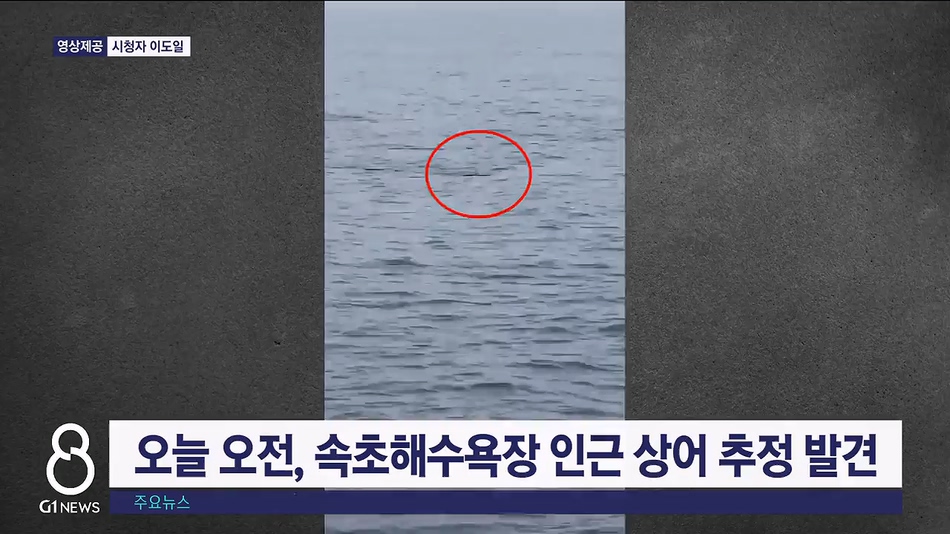 오늘(27일) 오전 11시쯤 속초해수욕장 앞바다에서 낚시를 하던 레저객이 상어로 추정되는 어류를 발견했습니다.