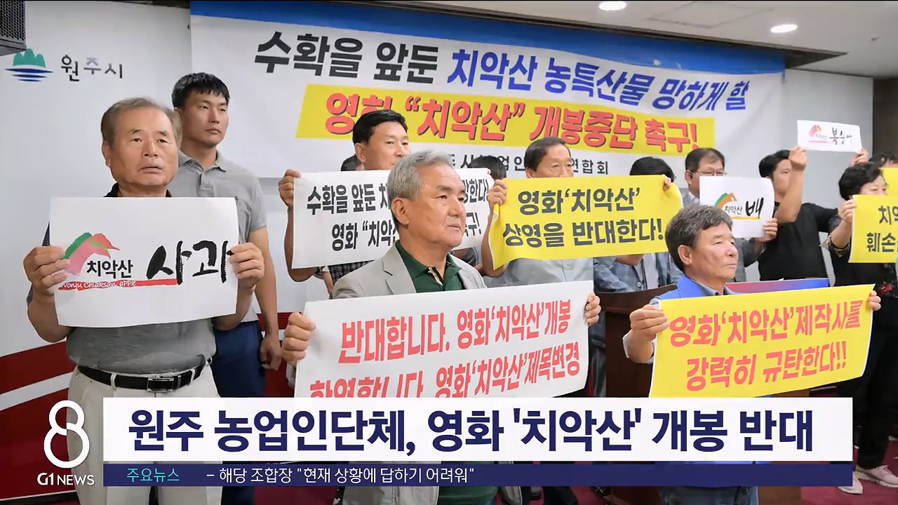 원주 농업인단체연합회는 "치악산 복숭아와 배, 사과 등의 수확시기를 앞둔 시기에 영화를 개봉하는 것은 농민들을 궁지로 몰아넣는 행위"라며 "영화 개봉을 결사 반대한다"고 밝혔습니다.