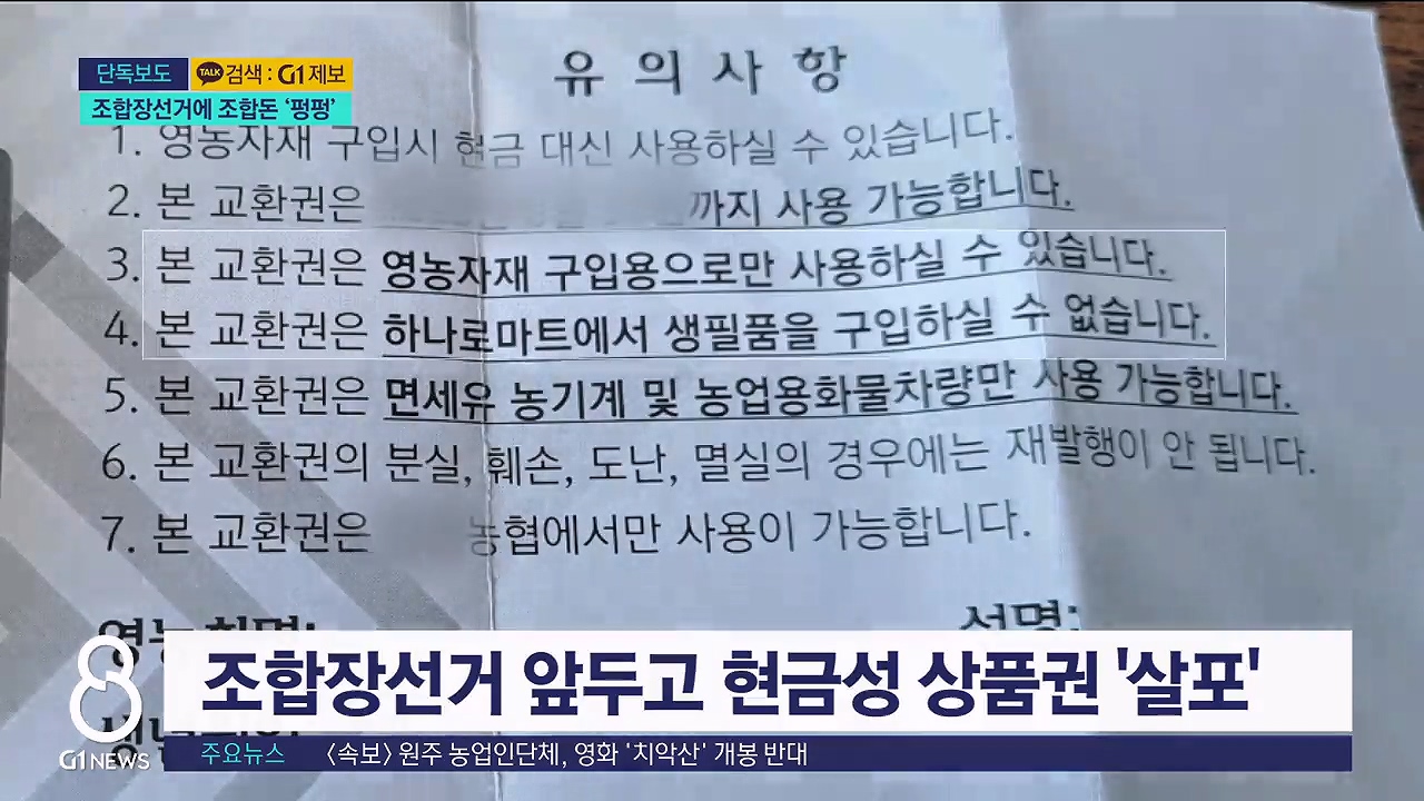 지난 3월 치러진 전국동시조합장 선거 과정에서 도내 한 농협이 금품을 살포한 의혹이 제기됐습니다.
