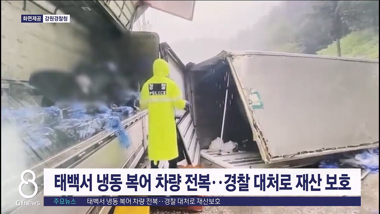 태백서 냉동 복어 차량 전복..경찰 대처로 재산보호
