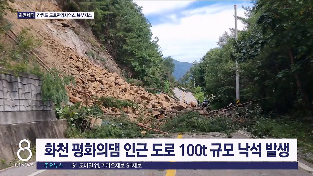 오늘 오후 2시 10분쯤, 화천군 화천읍 동촌리 재안터널 인근 460번 지방도에 100톤 가량의 낙석이 발생했습니다.