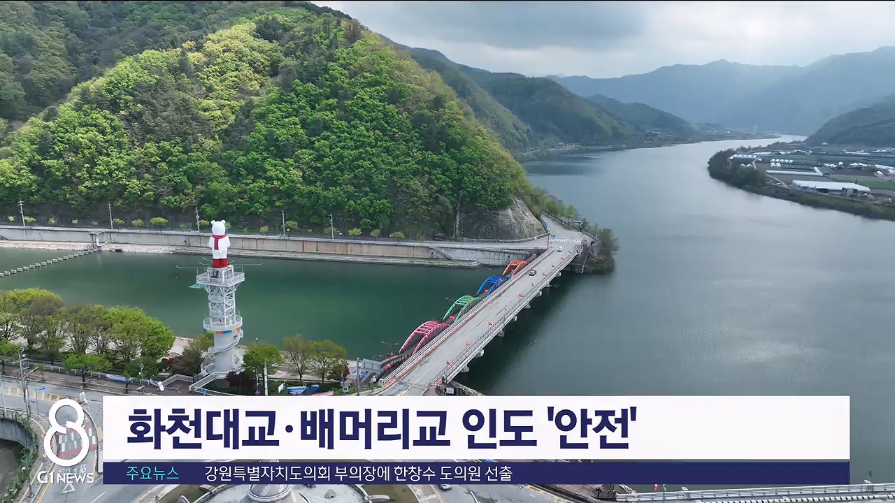 화천의 주요 다리인 화천대교와 배머리교의 인도 확장부가 안전하다는 검사 결과가 나왔습니다.