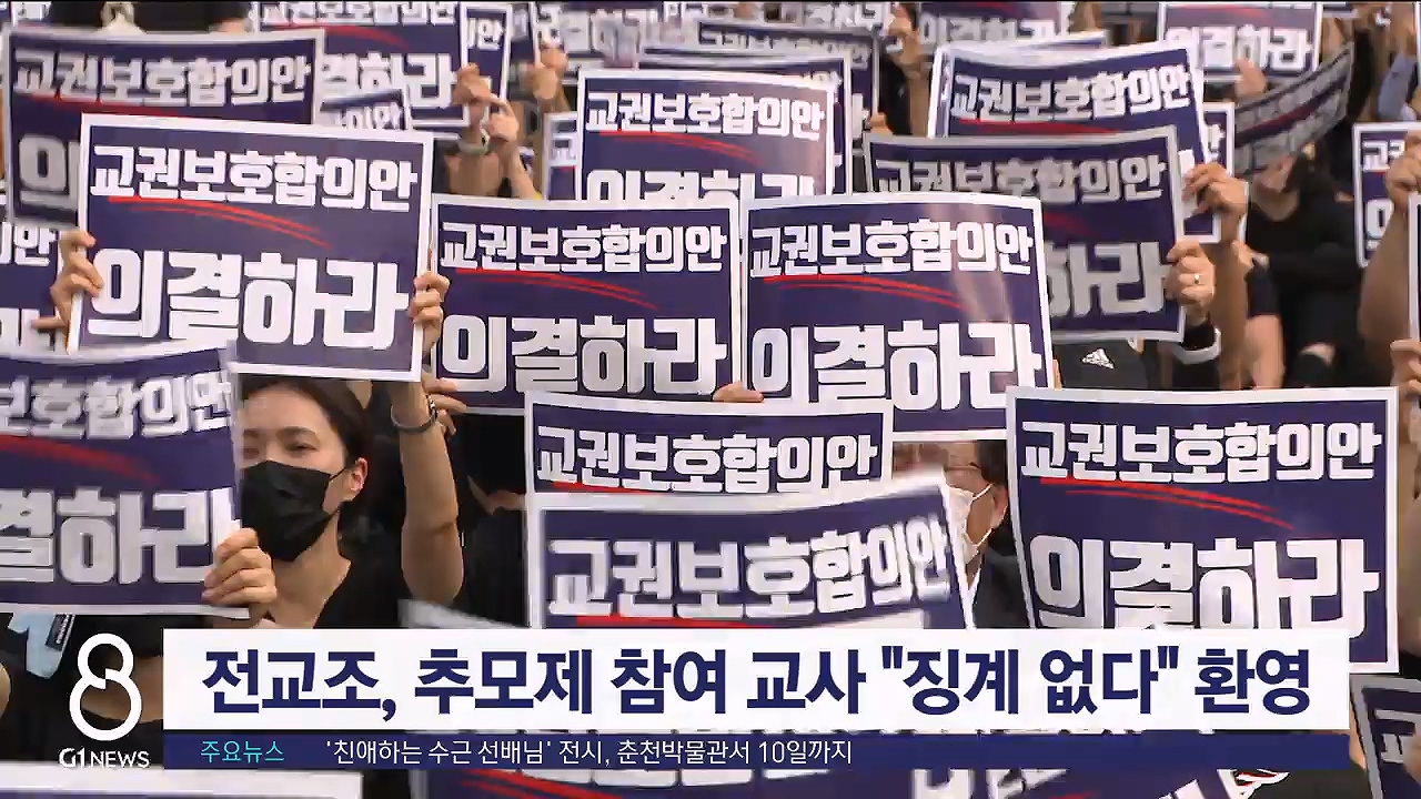 교육부가 지난 7월 숨진 서이초 교사에 대한 49재 추모제에 참석한 교사를 징계하지 않기로 한 것과 관련해, 전교조 강원지부가 환영의 뜻을 밝혔습니다.