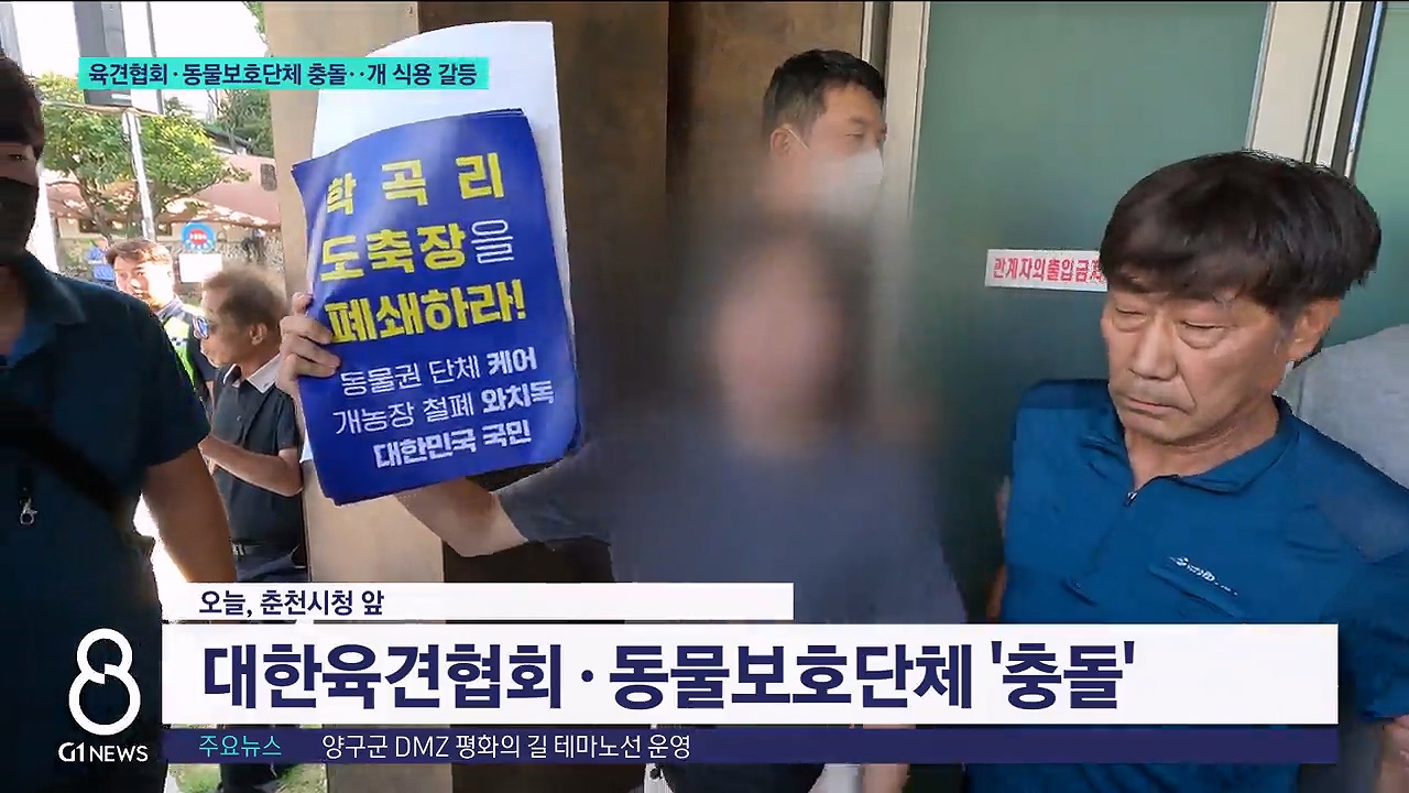 '생존권 침해'를 주장하는 육견협회가 기자회견을 하려하자,
