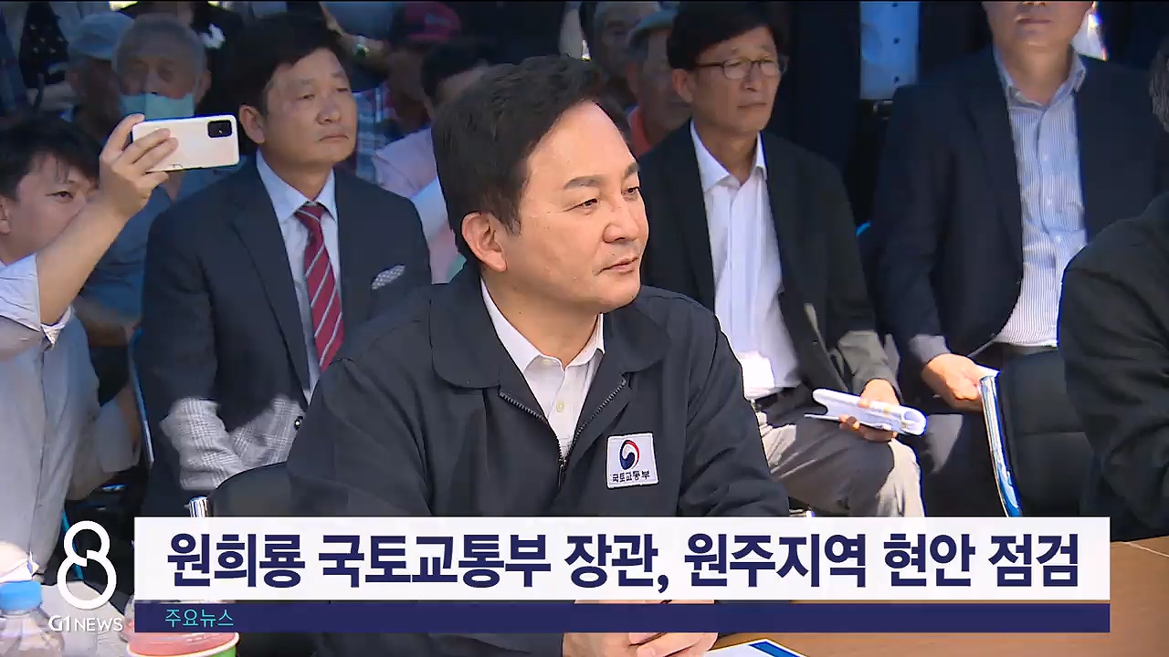 원 장관은 이날 흥업면 사제리 광터교차로 인근에서 정의경 원주국토관리청장으로부터 지역 현안을 보고받고, 박정하 국회의원과 원강수 원주시장과 대응 방안을 모색했습니다.