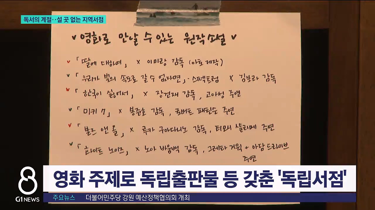 "독서인구도 줄고 서점도 줄고 있지만, 점차 커뮤니티 공간이나 경험, 소통 자체를 중시하는새로운 서점문화에 대한 바람도 커지고 있습니다. G1뉴스 송혜림입니다."