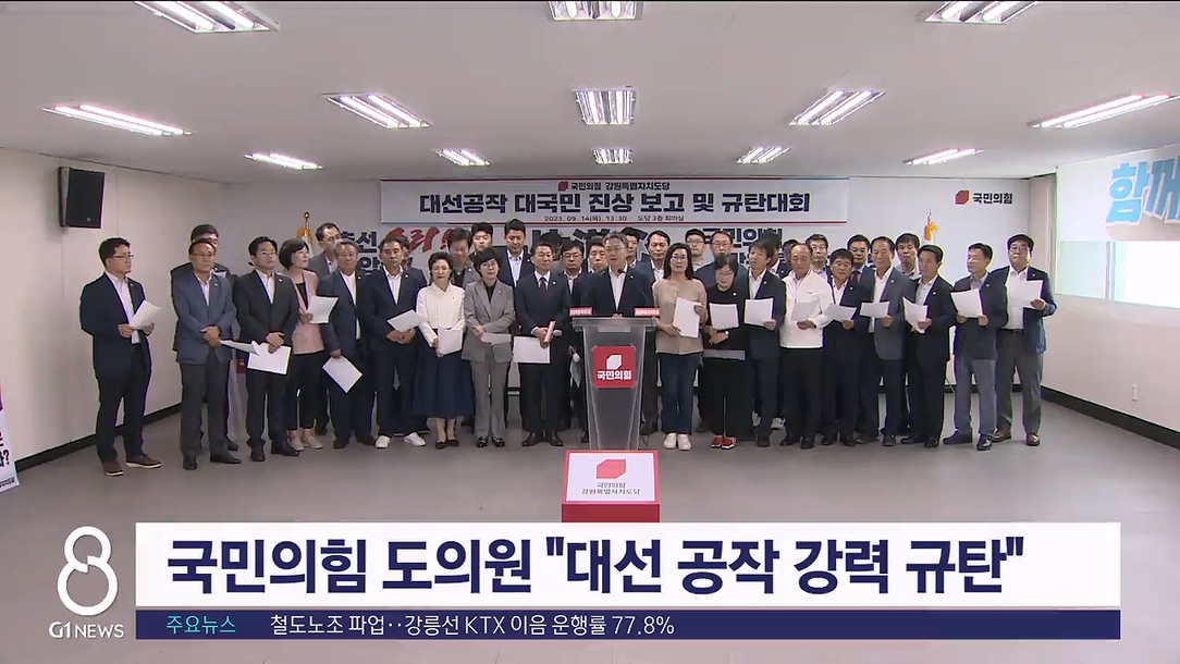 국민의힘 소속 강원특별자치도의원들은 오늘(14일) 도당 회의실에서 '강원도 대선 공작 대국민 진상 보고 및 규탄대회'를 가졌습니다.
