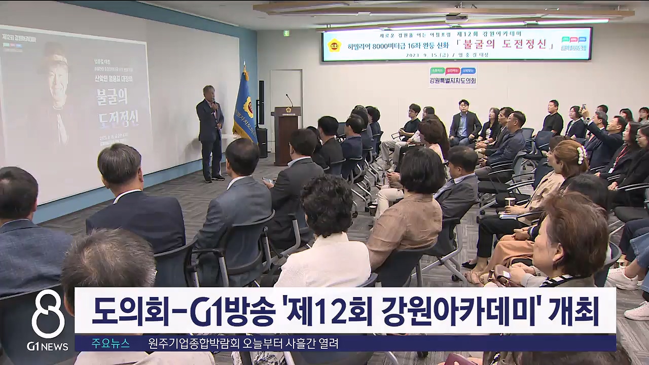 강원특별자치도의회와 G1방송이 국내 저명인사를 초청해 진행하는 '제12회 강원아카데미'가 오늘(15일) 도의회 세미나실에서 열렸습니다.