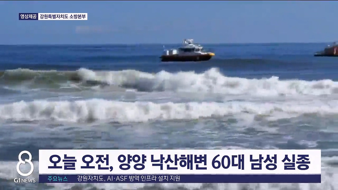 오늘(22일) 오전 9시 24분쯤 양양 낙산해변 인근에서 60대 남성이 물에 빠져 실종됐습니다.