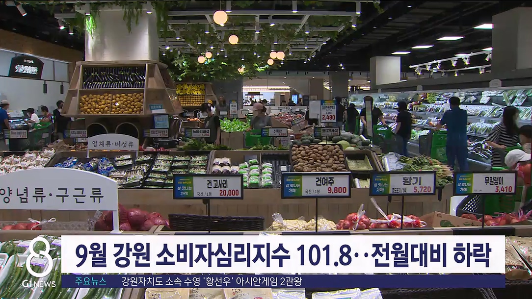 강원지역 9월 소비자심리지수가 지난달보다 소폭 감소한 것으로 나타났습니다.