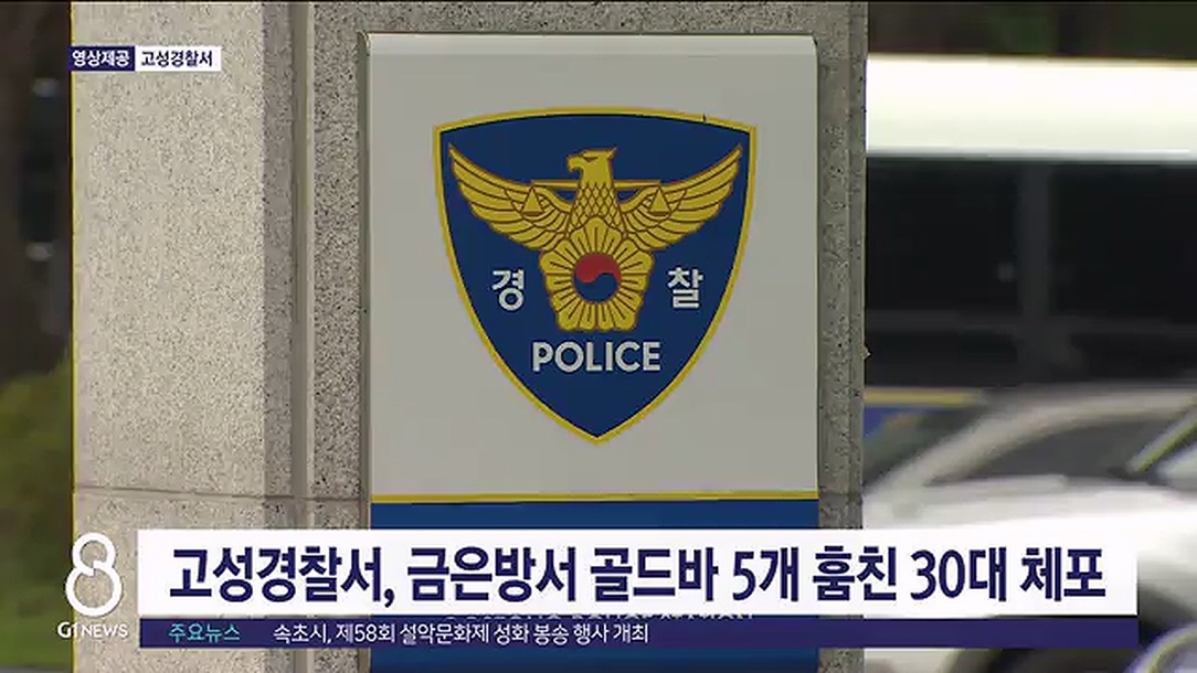 고성경찰서, 금은방서 골드바 5개 훔친 30대 체포
