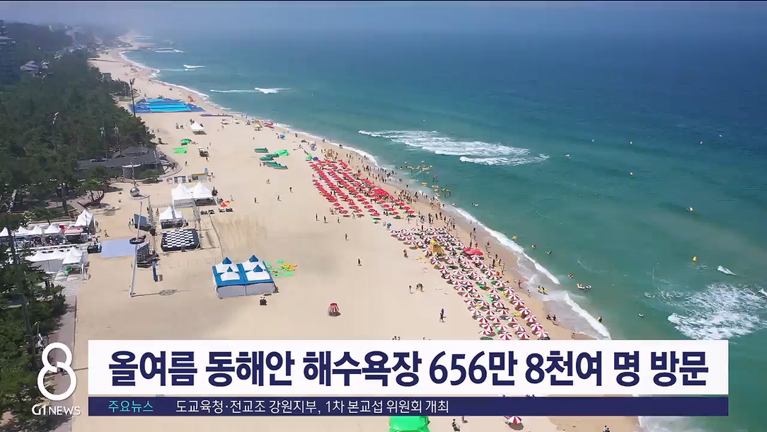 강원특별자치도 글로벌본부에 따르면, 올 여름 동해안 해수욕장 방문객은 모두 656만 8천여 명으로 지난해보다 5.1% 감소했습니다.