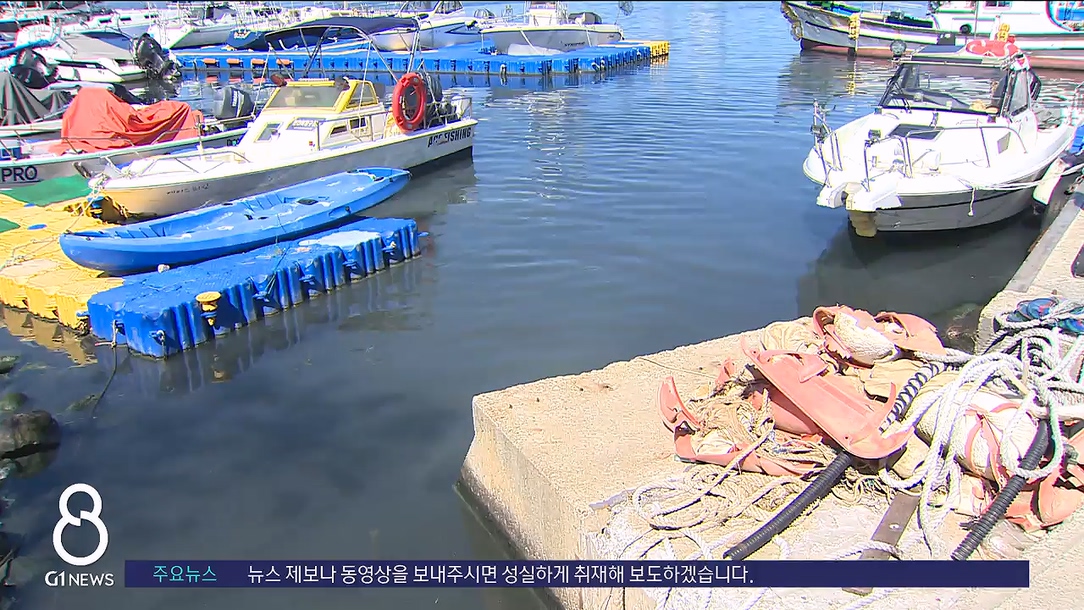 정박해 있는 요트 주변으로 물이 뿌옇게 변했습니다.