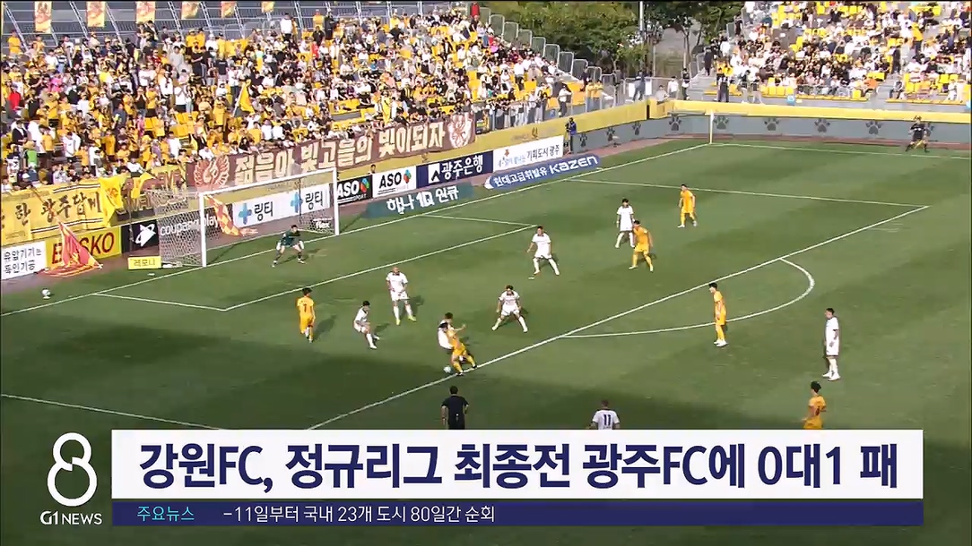 강원FC가 오늘(8일) 광주 축구전용구장에서 열린 광주FC와의 33라운드 2023 정규리그 최종전에서 1 대 0으로 패했습니다.
