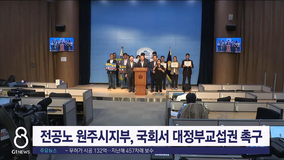 국민의힘 박정하 의원과 전공노 원주시지부 등은 오늘(12일) 국회 소통관에서 기자회견을 갖고, 민주노총과 전공노에 대정부교섭권 참여를 요구했습니다.