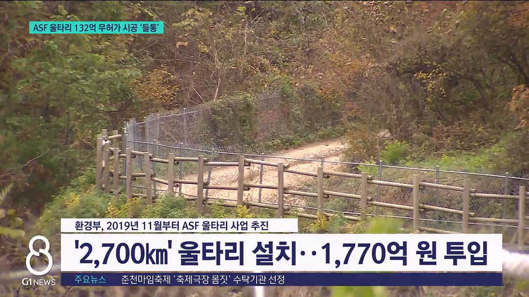 "ASF 울타리 사업이 시작되고 4년이 흐른 지금에서야 울타리 공사를 둘러싼 의혹이 한꺼풀씩 벗겨지고 있습니다. G1뉴스 원석진입니다."