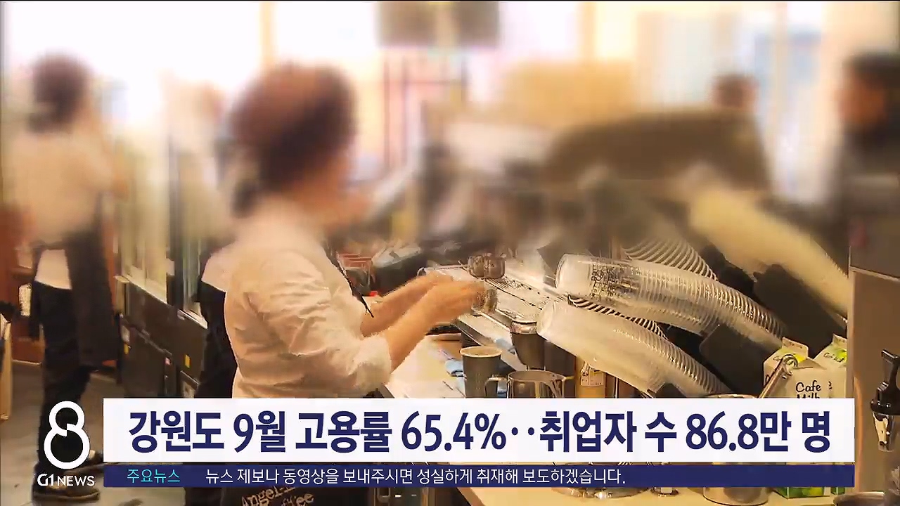 강원도 9월 고용률 65.4%..취업자 수 86.8만 명