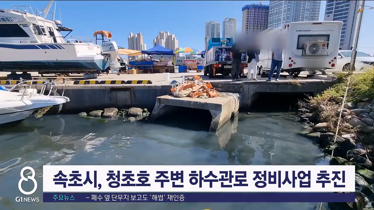 속초 청초호 주변으로 원인을 알 수 없는 오폐수가 유입되고 있다는 G1보도와 관련해 속초시가 하수관로 정비 사업을 추진합니다.