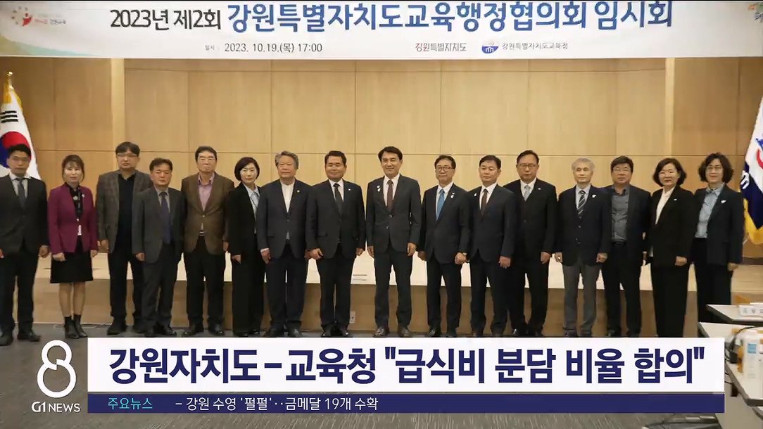 강원특별자치도와 도교육청이 내년부터 친환경 학교급식비 등 '비법정 협력 사업'에 대한 예산 분담 비율에 합의했습니다.