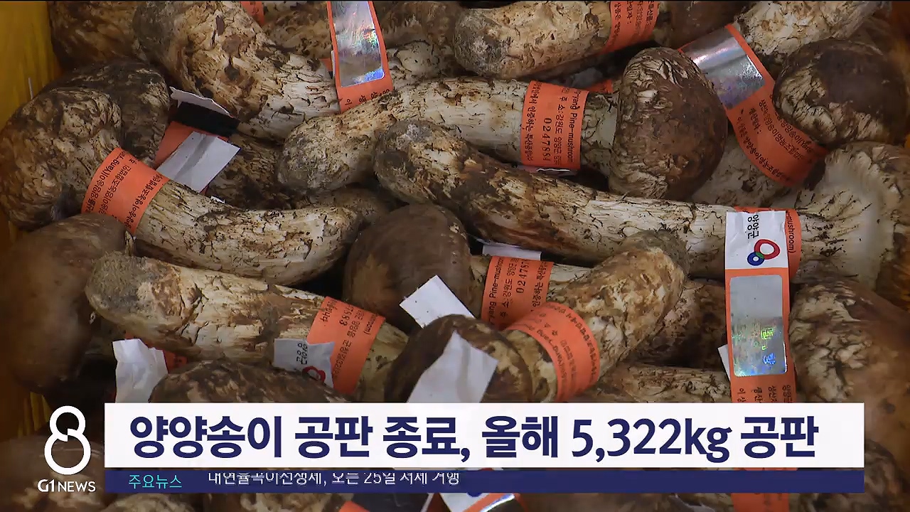 양양속초산림조합은 최근 사흘간 하루 수매량이 30kg 이하로 떨어지는 등 생산 물량이 급격히 감소함에 따라, 어제를 마지막으로 올해 양양송이 공판을 마무리했다고 밝혔습니다.